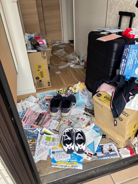 玄関先は荷物は少なかったものの、ゴミが散らかっていましたので、素早く仕分けと撤去を行い、清潔な状態に整えました。