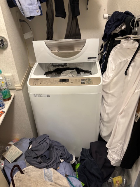脱衣所には衣類が散乱し、かなり汚れている状況でしたが、一つひとつ丁寧に対処し、清潔で使いやすい空間へと整えました。