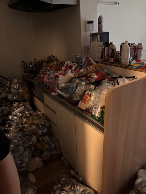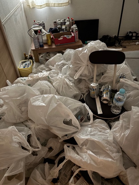 お部屋は2LDKで、室内には空き缶やペットボトルをはじめ、さまざまなゴミが散乱していました。