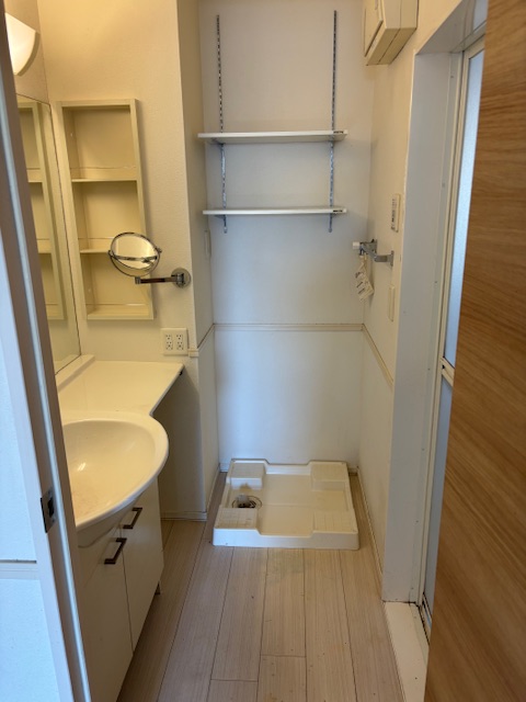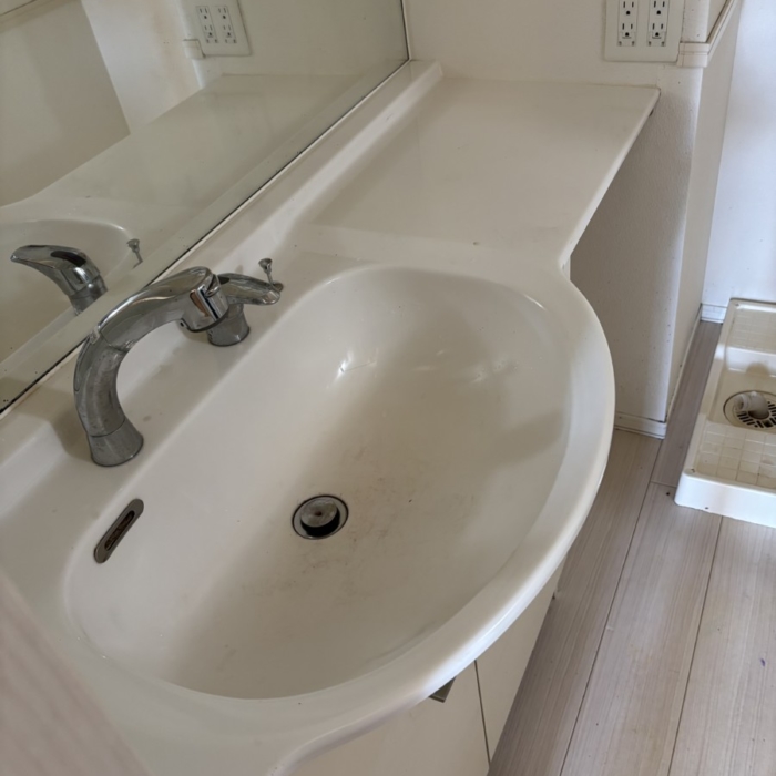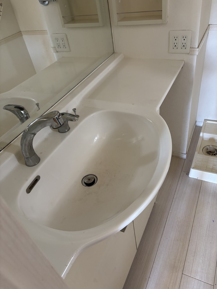 洗面台にはたくさんの荷物が置かれていましたが、すべて撤去したうえで清掃を行い、使用できる状態にきちんと整えました。
