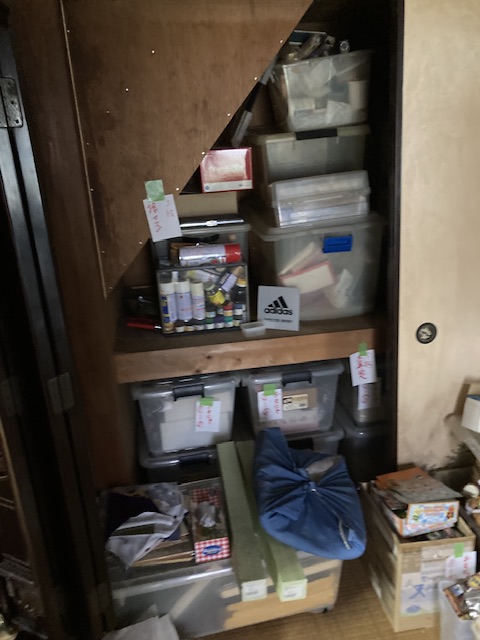 各部屋には備え付けの収納スペースがあり、その中にも多くの家財道具や生活用品が保管されていました。
