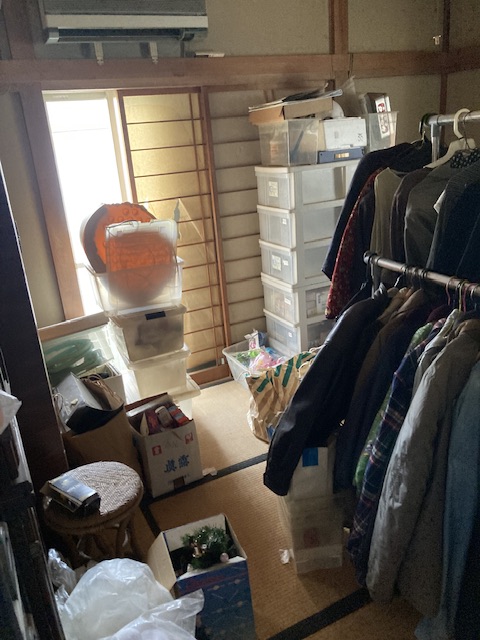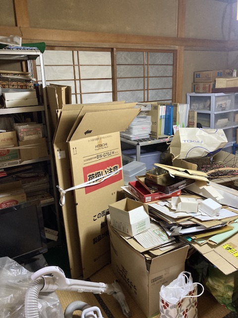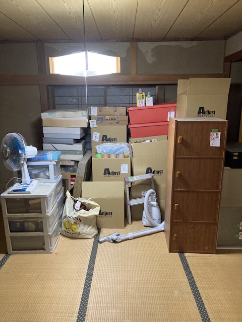 こちらのお部屋も、床いっぱいに荷物がびっしりと詰まった状態でした。