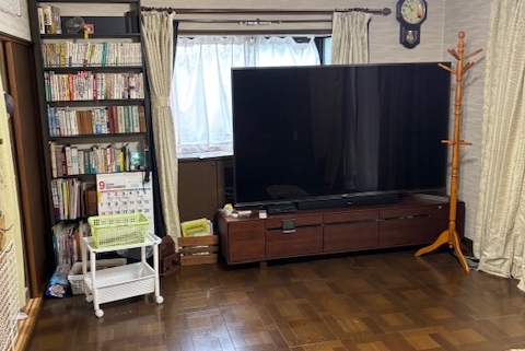 テレビや書籍類は査定のうえ買取対象とさせていただきました。特にテレビは大型サイズで、搬出にはスタッフ3名で慎重に運び出すほどの重量と大きさでした。
