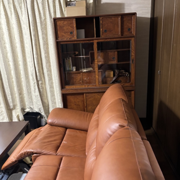こちらは電動リクライニング式のソファーで、大型かつ重量もあるため、そのままでは搬出が難しい状態でした。