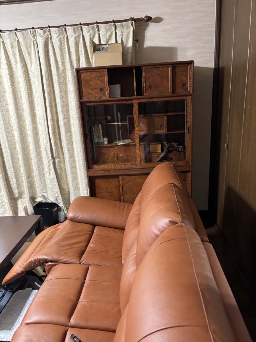 こちらは電動リクライニング式のソファーで、大型かつ重量もあるため、そのままでは搬出が難しい状態でした。