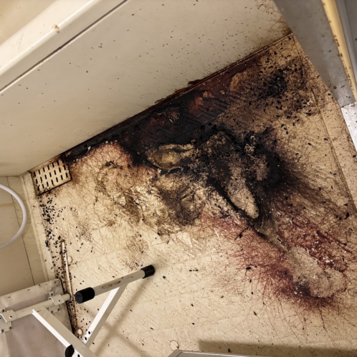 そのため、浴槽内部・エプロン裏・床下スペースまで丁寧に作業を進め、汚染物をすべて除去。さらに全体の消毒を繰り返し行い、臭気の軽減と安全性の確保に努めました。