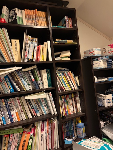 2階の収納室には大きな本棚があり、書籍がぎっしりと収納されていました。
