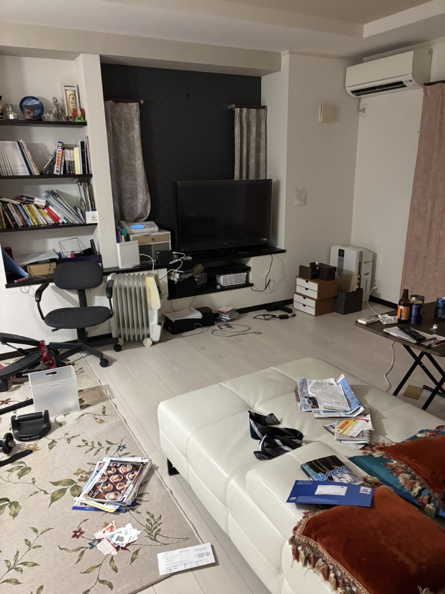 テレビやソファーなど引き続き利用される家具はそのまま残し、その他の細かい家財については、一つひとつ確認しながら適切に処分しています。