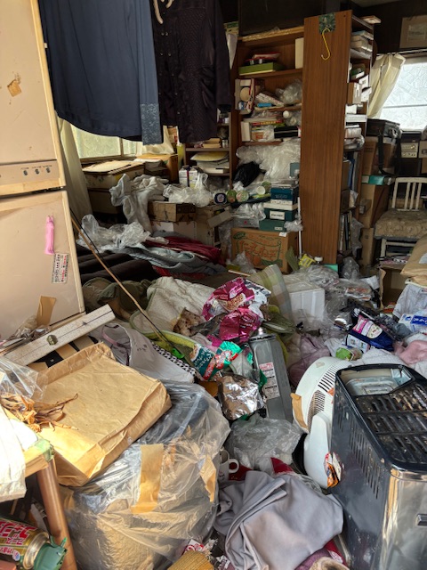 室内はスタッフ1名が入るのがやっとの状態で、想定以上の物量があったため、2日間にわたって慎重に片付け作業を行いました。