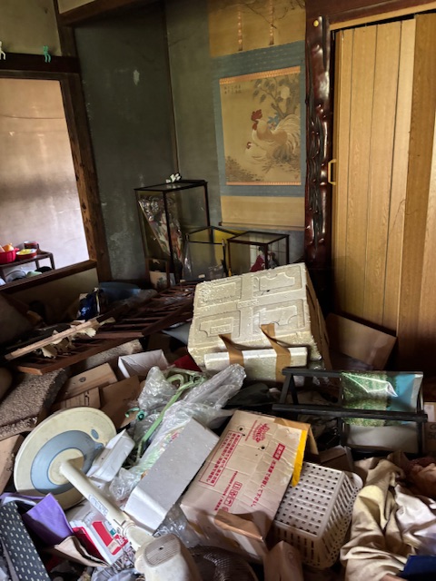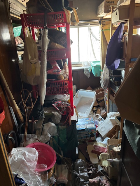 こちらの部屋は、6LDKとは別に納戸として使用されていたスペースで、多くの荷物が隙間なく詰め込まれていました。