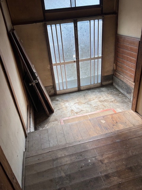 その後、動線を確保できた段階で玄関部分の撤去作業を行い、最終的に玄関を使用できる状態まで整えています。