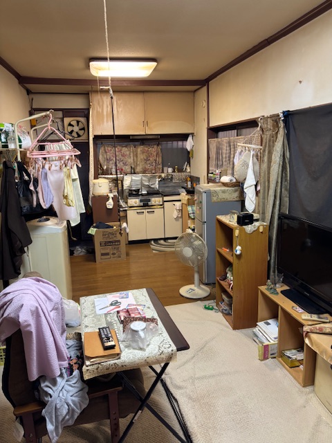 一方で、タンスや大型家具などはほとんどなく、お荷物の「大割り(搬出・まとめ作業)」は進めやすい環境だったため、作業全体としてはスムーズに進行するお部屋の状況でした。