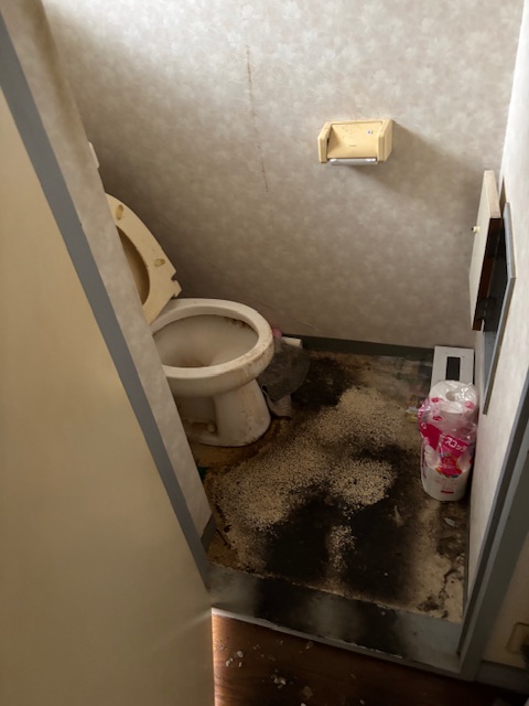 生前、足が弱かったのではないかと思われます。それはトイレに行くまでの間に、フローリングや廊下に便が付着していたからです。足の悪い方などの作業を行うとよく見かけることがあります。こちらも丁寧に清掃を行い、さらに匂いを撤去しております。