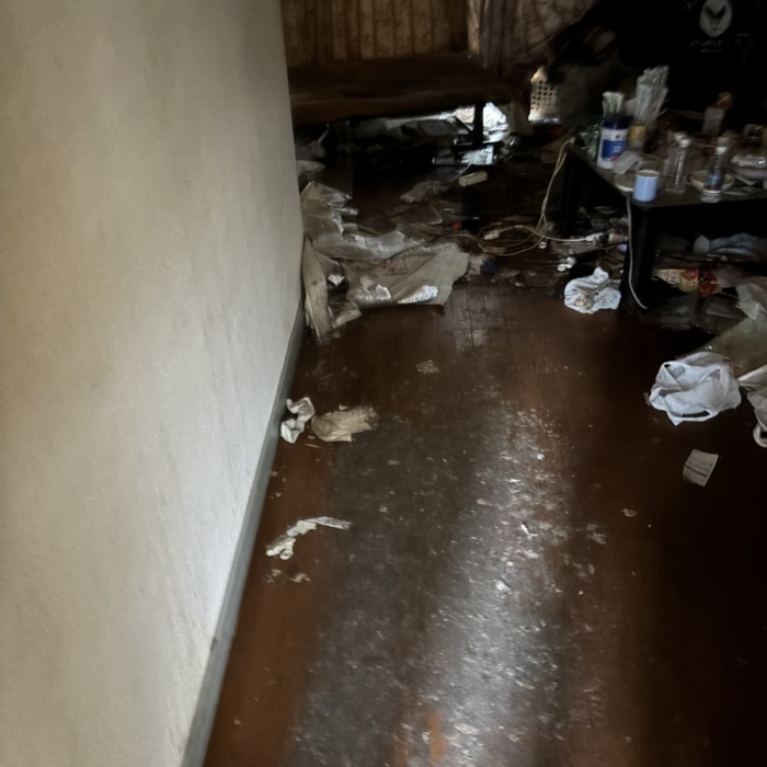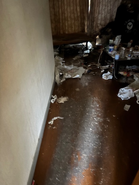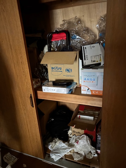 押し入れの中にもゴミがかなり詰まっておりました。こちらも丁寧に仕分けし、すべて撤去しております。最後に清掃と消臭作業を十分に行い臭いは完全になくなりました。しかしながら、この後、クッションフロアを張り替えたり、壁紙を張り替えたりする方を行うとの事でした。今回の内容は、リフォームを行う職人さんが、作業しやすい環境を作って下さい。と言われていましたので、ご依頼者様にも大変満足していただけました。