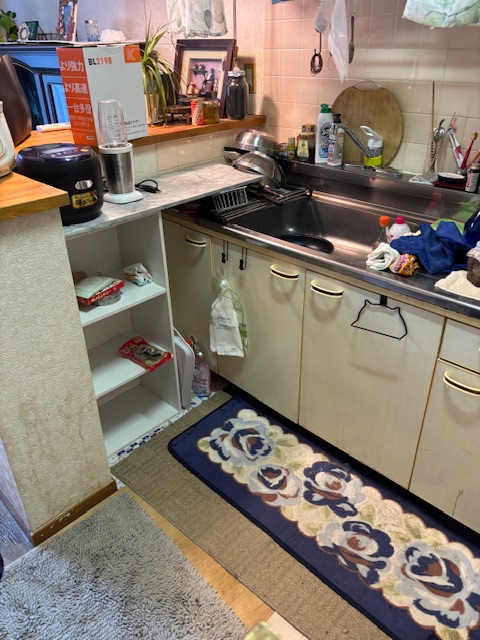 キッチンは全て仕分けを行い丁寧に処分しました。またシンク下や棚にもたくさんの材が入っておりました。